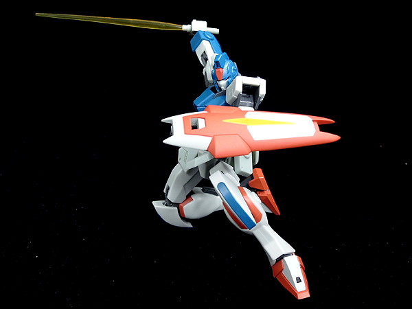 立ちヒザも余裕ですし、背中のサーベルにちゃんと手が届く可動範囲もポーズ演出には効果的です。
