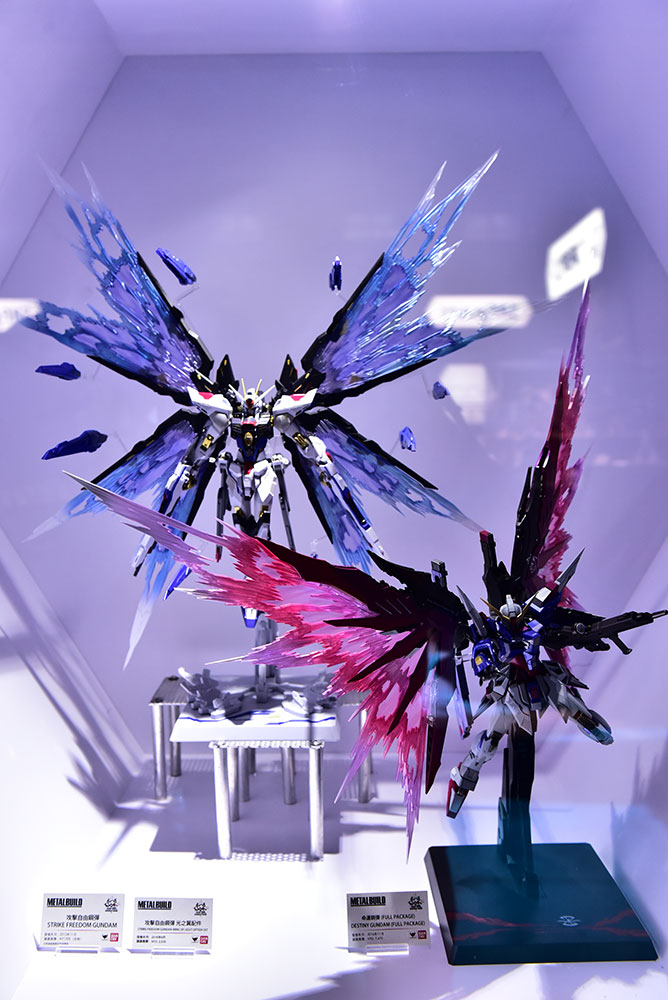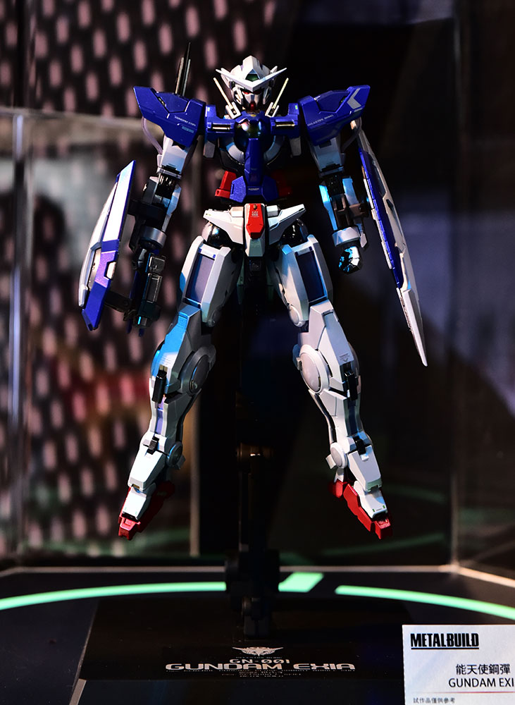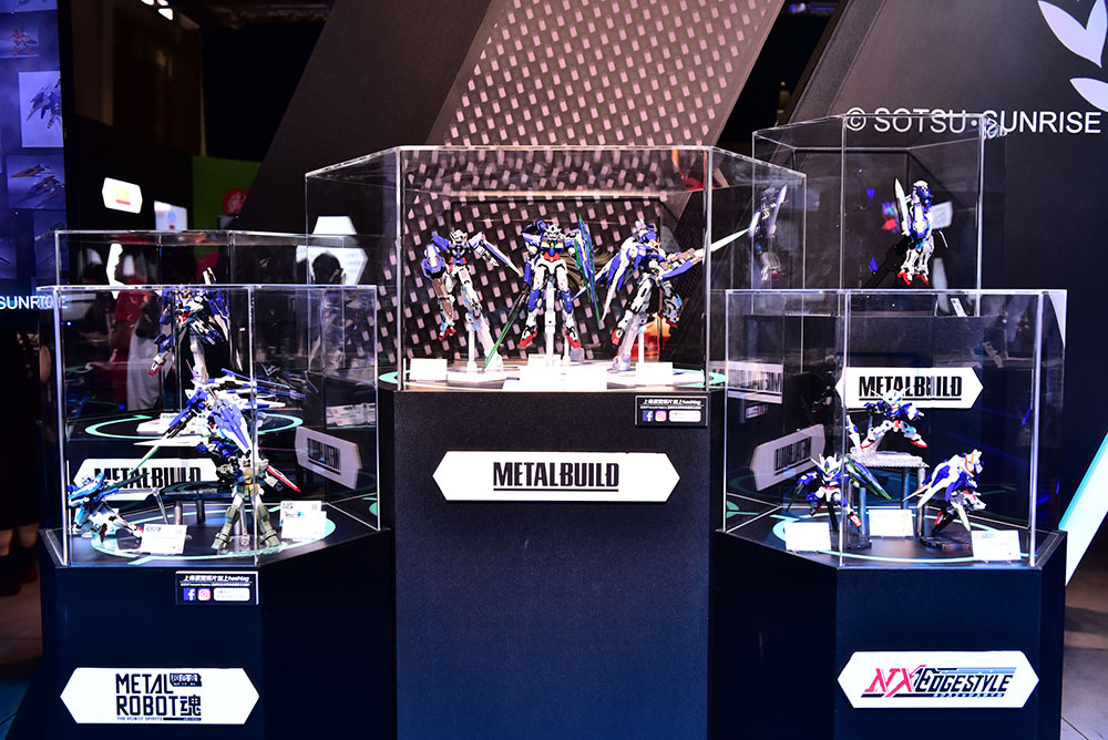 5月の「ワールドツアー“大阪”」でも展示された「METAL ROBOT魂 ダブルオーライザーパーツセット」(参考展示)が新たな形態で展示された他、特殊なカラーリングが施された「METAL BUILD ガンダムエクシア」も参考展示品として初お披露目!