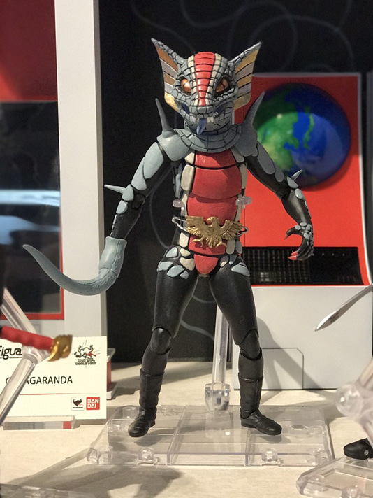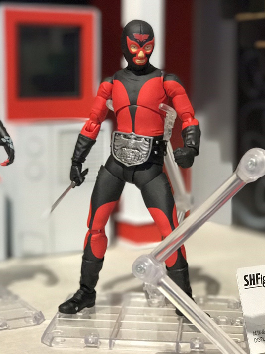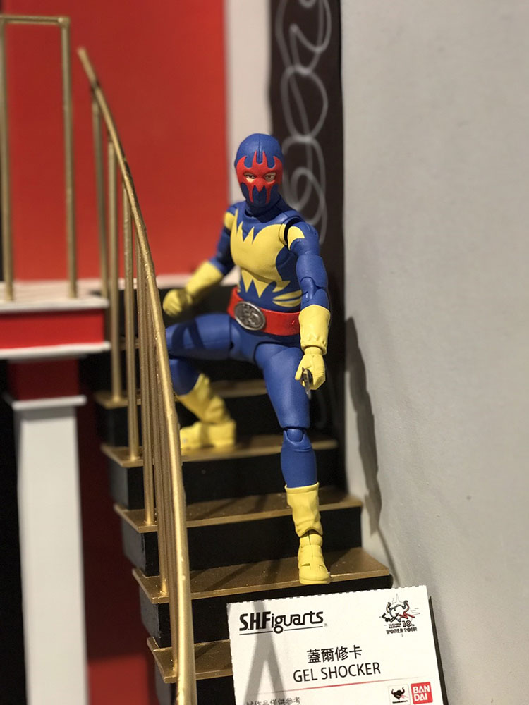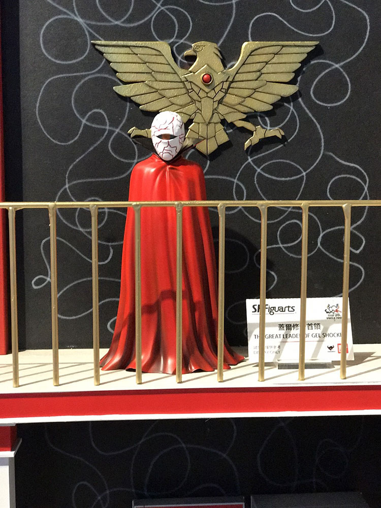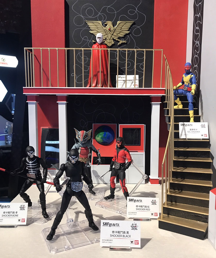 さらに、予約受付中の上記2商品の世界観を更に広げる展示として、ショッカー基地のジオラマにS.H.Figuartsでショッカーの幹部・戦闘員・怪人が大集合!「ゲルショッカー首領」、「ゲルショッカー戦闘員」、「ショッカー戦闘員(黒/骨/赤)」、「ガラガランダ」の計6体が参考展示されました。