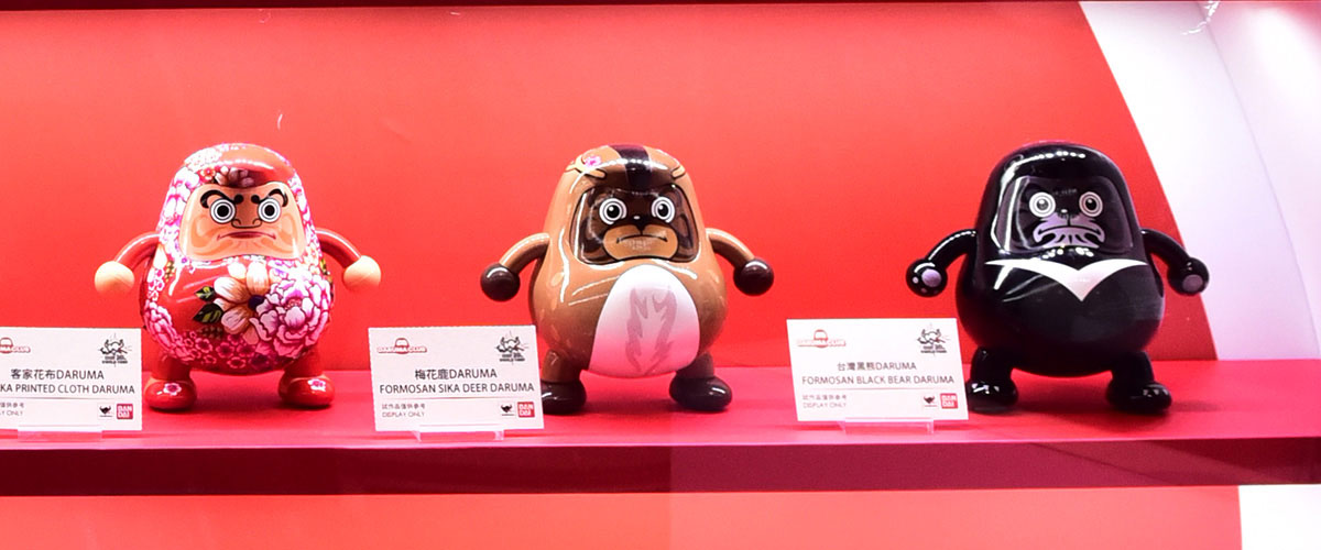 台湾でも人気の高い「DARUMA CLUB」からは、台湾オリジナル絵柄のだるまが一挙展示!