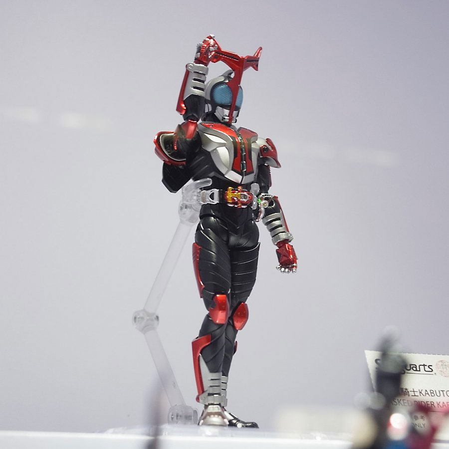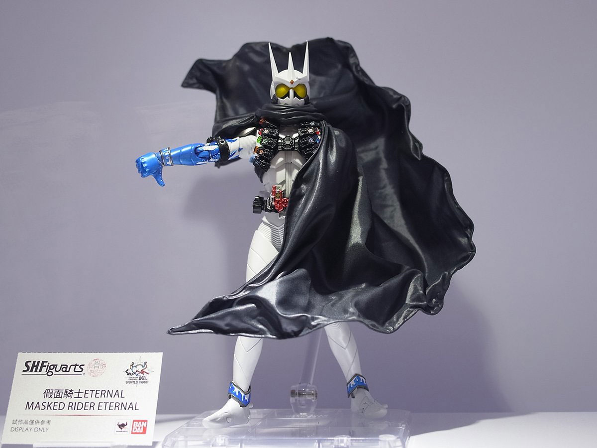 真骨彫製法からは、布素材のマントを採用した「S.H.Figuarts(真骨彫製法) 仮面ライダーエターナル」や、「S.H.Figuarts(真骨彫製法) 仮面ライダーカブト ハイパーフォーム」も参考試作として展示されました。
