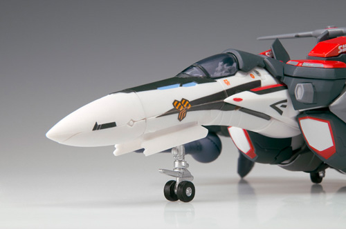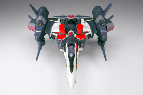 差し替え変形ギミックや可動・着脱部分は発売中のアルト機から部分的にブラッシュアップされ、「Ver.1.2」相当の本体仕様となります。ビームガン可動、ミサイルポッド部ハッチ差し替え開閉。