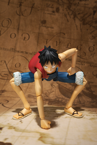 ワンピース初の本格アクションフィギュアとして、豊富な表情バリエーションやゴムゴムの実による伸びた腕などを差し替えで再現。アクションフィギュア単体としても、ジェットピストルなど劇中の印象深いポーズが再現可能。