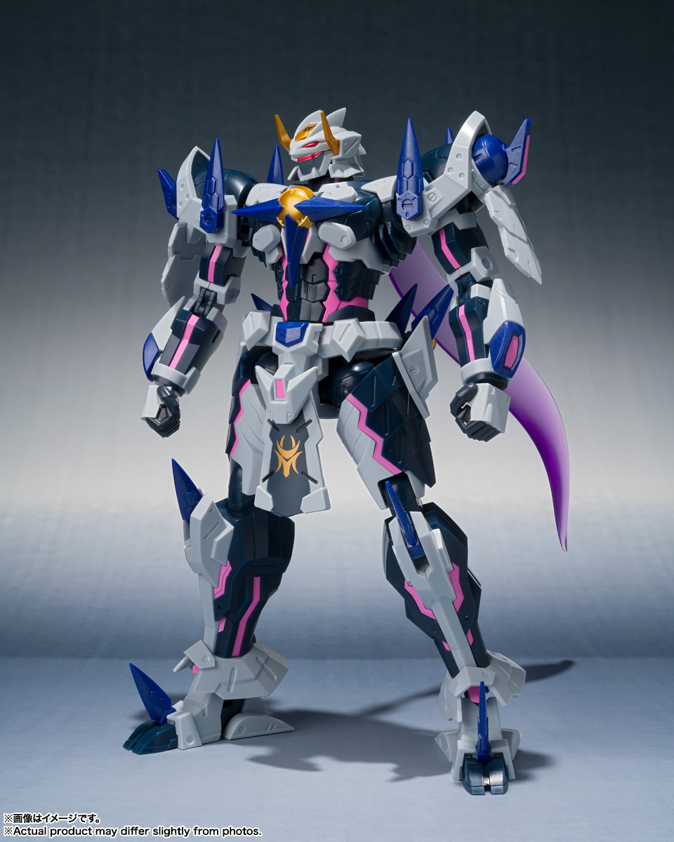 「ルーンドラッヘ」はMがんぢー氏がデザインを手掛けた忍者をモチーフとしたロボットで、その特徴的な造形を再現。またこだわりの可動域の設計により、格闘戦が得意な本機体を様々なポージングで飾ることができる。特徴的なエナジーマフラー「霊粒編布(れいりゅうへんぷ)」はクリアパーツにて表現。肩部のビームマシンキャノン「光粒弾」の展開ギミックも搭載。胸部に装着されている大型手裏剣「双龍牙(そうりゅうが)」も装着時の造形と、分離後の2つに分かれる造形の両方を収録。また必殺技を再現するための右手や、最強必殺技時のフェイスパーツも付属。こちらのアイテムは『スーパーロボット大戦Y 超限定版』に同梱される。
