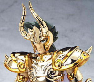 聖剣エクスカリバーを宿した、山羊座の黄金聖闘士シュラが聖闘士聖衣神話に登場。 全身を覆うクロスは、ゴールドメッキされたダイキャストを使用。 クロスは山羊座オブジェに組替え可能。さらにマスクパーツは、アニメ仕様と原作仕様の2種が付属。