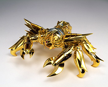 黄金聖闘士の名悪役(?)キャンサーデスマスクがセイントクロスマイスシリーズに登場。黄金聖闘士の中でも特に鋭角な聖衣をシャープな造形で再現。原作設定のボディアーマー、前垂れアーマーが付属し、TVシリーズでのボディスーツ的スタイルと原作での鎧然としたスタイル、2つのテイストを楽しむことが出来る。