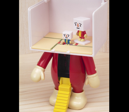 超合金魂じゃなくって「超合金楽(ちょうごうきんたのしい!)」。名前だけ聞いてもワクワクしてしまう「楽しい」。第一弾は期待を裏切らず柔らかいのに硬い【トーフ親子】が登場!!しかも家族で。乳母車もついた「トーフ親子」のコンプリートセット。知ってた?「トーフ親子」って世界中で人気なの。(超合金なのにトーフ・・・。あのトーフ親子が超合金に!デザイン集団「デビルロボッツ」が生んだ大人気キャラクターのトーフ親子。びっくりしたのは、日本のみならず、アメリカを中心とした世界中にファンがいること。トーフは世界的な食べ物らしいです。もちろん4畳半頭部やロケットパンチなどの脱力ギミックも満載。親子3体+手押し車の充実セット。)