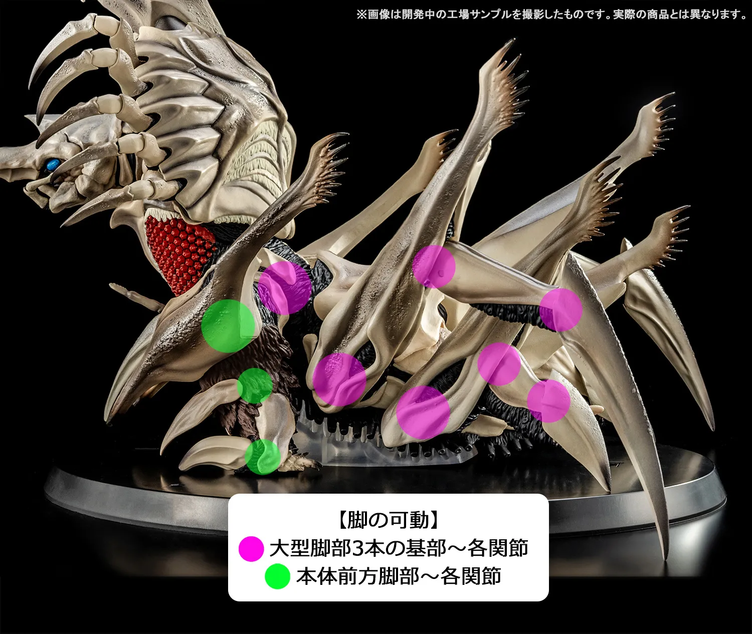 何本もの脚からなる「レギオンらしいアクション」が楽しめる可動ギミックもポイントのひとつ。首・腹・腰といった体幹に大型ボールジョイントが配されており、首を反らしたり身を捩ったりといった迫力あるポージングが可能です。