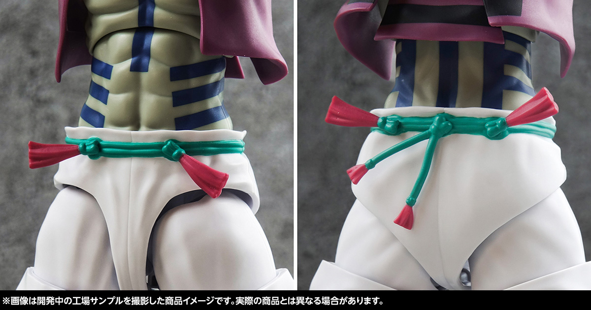 さらに下半身の袴のパーツは細かいシワなどの造形にくわえ、膝の広い可動による膝立ちなどの柔軟かつ自然なポージングが楽しめます。