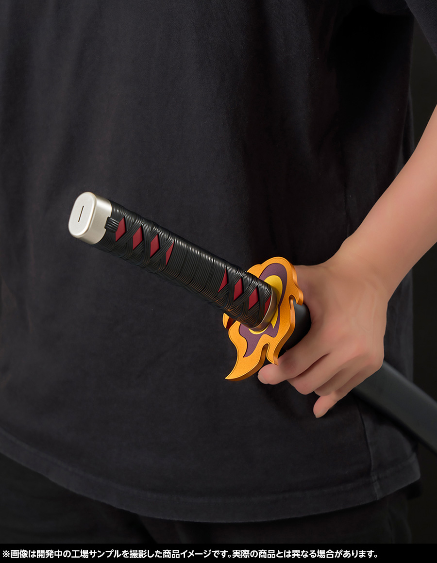 そして「煉獄杏寿郎」の日輪刀から受け継いだ「鍔」にも注目!彩色や細かな凹凸の造形まで公式監修の下忠実に再現しています。